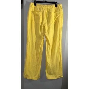 INC Beach linen relaxed wide leg pants yellow with pockets and drawstring US 12
