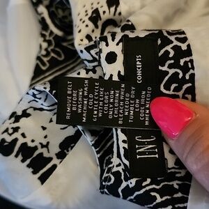 INC Belted Black White Paisley Midi Dress Size 8 Petite Sleeveless