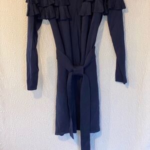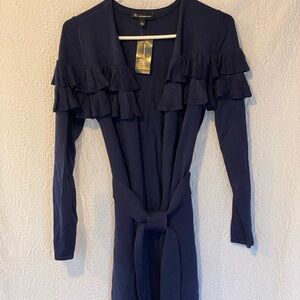 Flouncy ruffles enhance the cozy-chic charm of this belted completer cardigan from INC International Concepts.