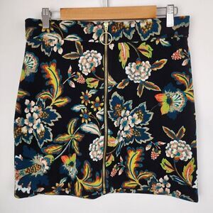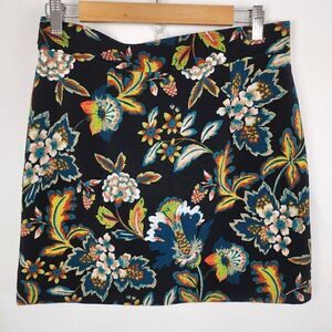 INC Black Floral Print A-Line Zipper Front Mini Skirt 60s Mod Womens Sz 8 $69.50