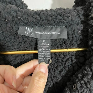 INC Black Knit Vest with Faux Fur Trimmed Hood Size M