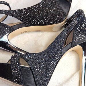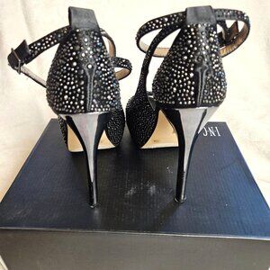 INC Black Rhinestone Embellished Platform Heels With Ankle Strap & Stiletto Siz