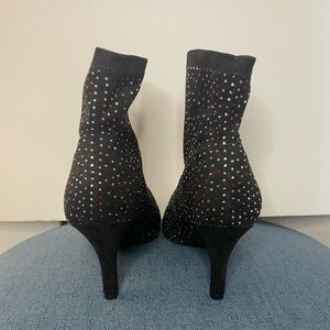 INC Black Rhinestone Padded Bray Pointed Toe Stiletto Booties size 10. The heel height is 3 inches.