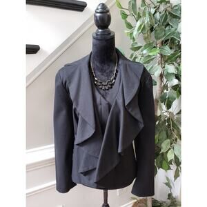 INC Black Ruffle Open Front Blazer Jacket 0X Women’s Draped Long Sleeve Stretch