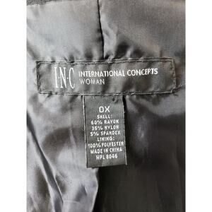 Chic and stylish, this INC International Concepts women's blazer in size 0X features a flattering open front with elegant ruffle draping. Made from a stretchy rayon-nylon blend, it's perfect for both work and formal outings.