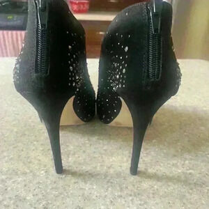 INC Black Suede and Silver Studs Perp Toe Bootie Shoe. Size 9M. Like new only worn 1x. Heel is 4 1/2 inches. Beautiful Shoe excellent condition #AL
