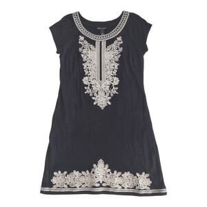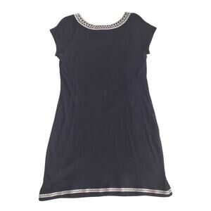 INC Black T-Shirt Shift Dress Size L Cream Embroidery Sequin Details Resort Wear
