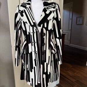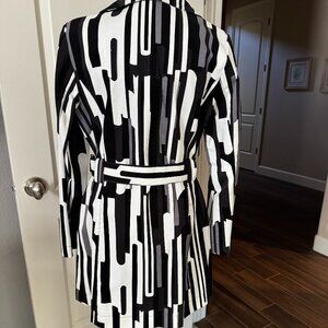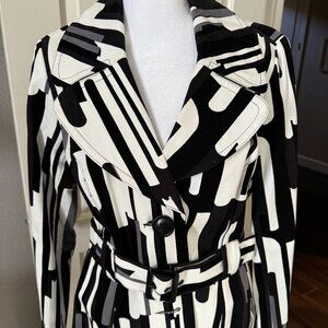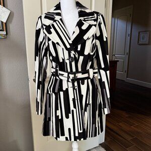 Beautiful INC Black and White Abstract Print Trench Coat in Size Medium. Never worn. Fully Lined.