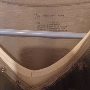 INC Black/Grey Stars Speckled Stripes Layered VNeck Short Sleeve TShirt L