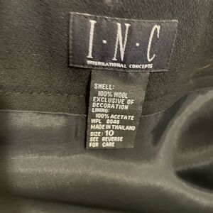 INC very nice, fully lined, black skirt with leather accents around the waist and down both sides. 💯 wool. This is a great skirt (great length )to have in your closet it’s perfect for any occasion!