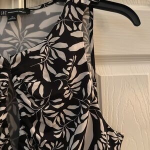 INC Blouse. Sleeveless. Black/White Design. Attractive Keyhole Detail in Front with Bar & Hook Closure at Top. Ruched Detail in Front. Very Classy & in Great Condition