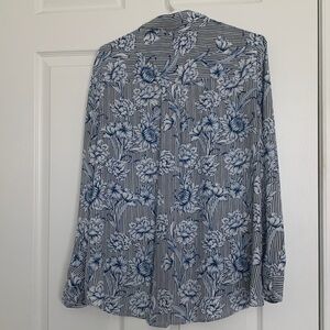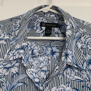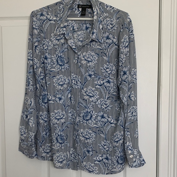 INC blouse in size XL. Excellent condition. No rips or stains. Hidden button closure down the front of blouse. Nice light weight fabric. Armpit to armpit to approx 13 inches. Length from shoulder is approx 28 inches to hem. (See photos)