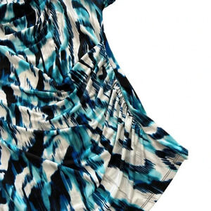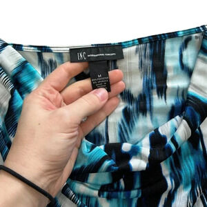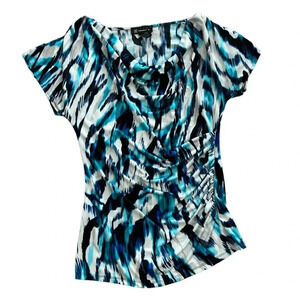 INC Size medium Blue Abstract Cowl neckline Short sleeve Side ruched