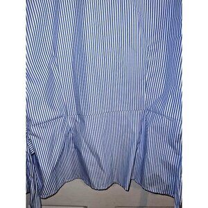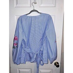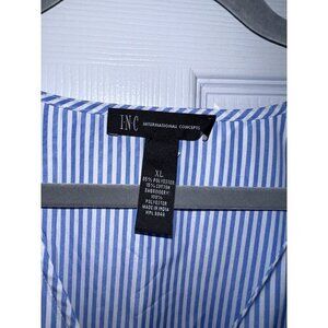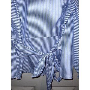 I.N.C. Blue Thin Stripes Embroidered Sleeves Belted Side Zipper Blouse Sz XL