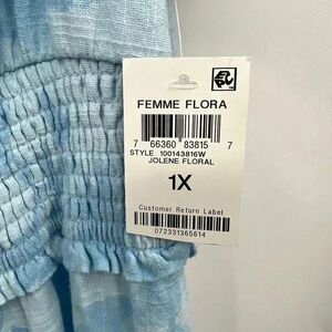 INC Blue White Floral Off Shoulder Printed Midi Dress Plus Size 1X New
