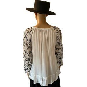 INC Boho Embroidered Ruffle Drop Waist Top 3/4 Sleeves Women's Size M
