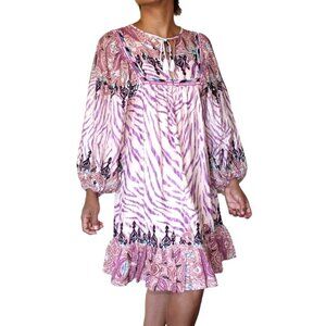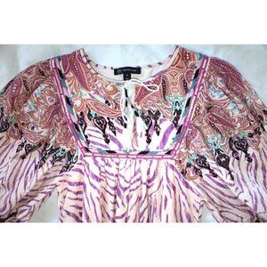 INC Boho Paisley Print Bubble Sleeve Prairie Dress Size M purple & Turquoise