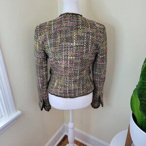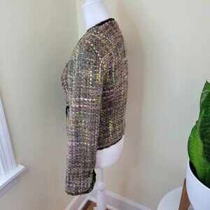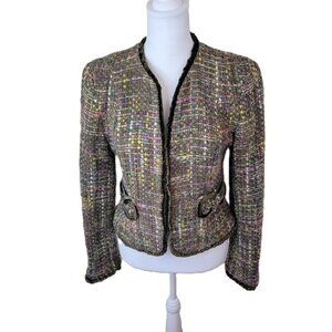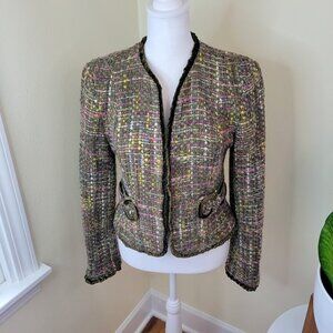 INC Bouclé Tweed Multicolored Blazer W Velvet Piping Trim Wool Blend Women's 2