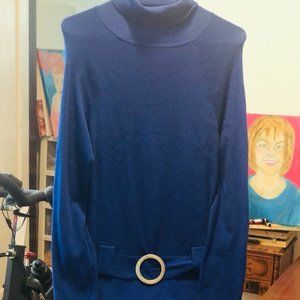 INC Brand Royal Blue Turtleneck Long Sweater with Hip Buckle Belt LARGE