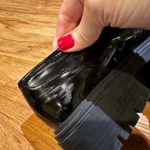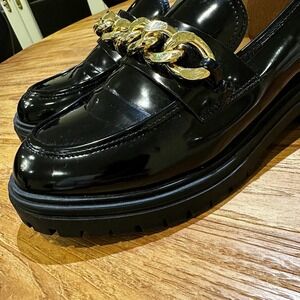 INC Brea Women’s Black Patent Leather Gold Chain Chunky Lug Sole Loafers Slip On