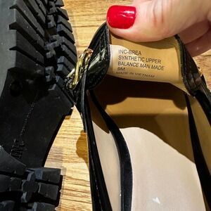 INC Brea Women’s Black Patent Leather Gold Chain Chunky Lug Sole Loafers