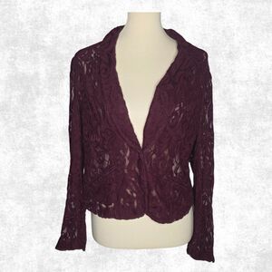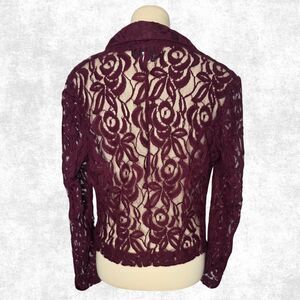 INC Burgundy Lace Blazer Jacket - Sheer Romantic Layer - Size Large