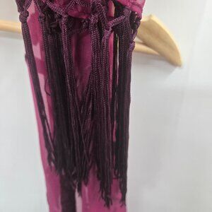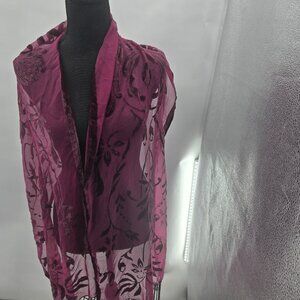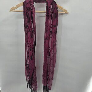 INC Burgundy Wine Sheer Velvet Floral Burnout Whimsigoth Tassel Scarf One Size