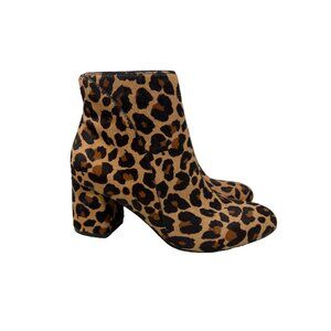 INC Calf Hair Ankle Boots Size 7 Tan Black Leopard Print Block Heel Zipper