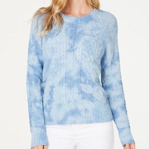 INC Chunky Cable Knit Marble Blue Crew Neck Sweater. Size Medium. NWT. 100% Cotton. Long sleeve with ribbed collar, cuffs and hem.