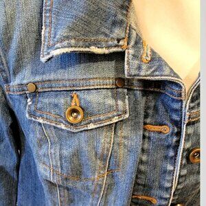 INC Classic Style Denim Jean Jacket Distressed Look in Size Medium