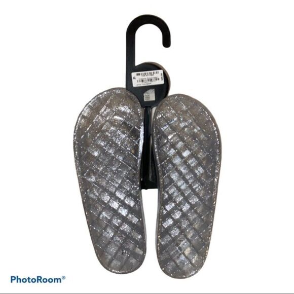 INC Clear Silver Glitter Jelly Pool Slides Sandals