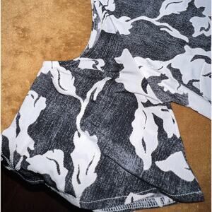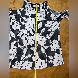 INC Cold Shoulder Black white mid sleeve textured floral print blouse Medium