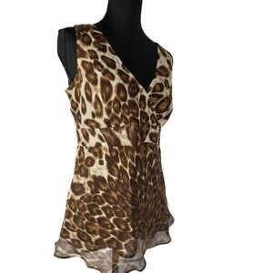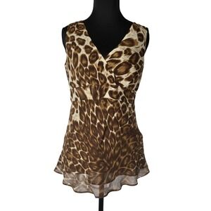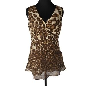 INC Concepts International Brown & Tan Blouse Aminal Print Size 4
