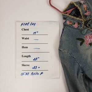 INC Concepts Petite P Denim Jacket Embroidered Flowers Womens Frog Closure Coat