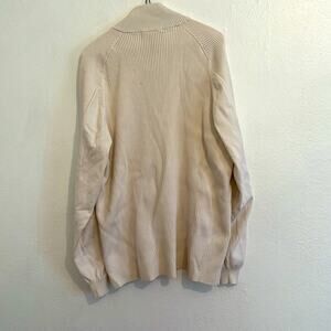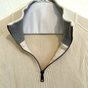 INC Cream With Gray Collar Lining Long Sleeve 1/4 Zip Rib Knit Sweater Size XL