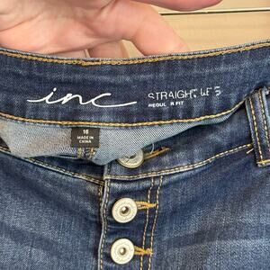 INC Cropped Jeans 16 Blue Denim Button Fly Straight Leg Regular Fit Fringe Hem