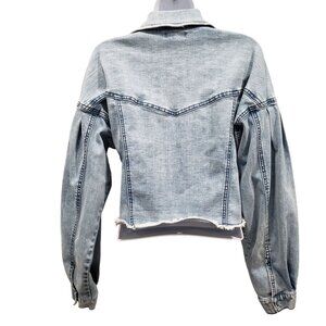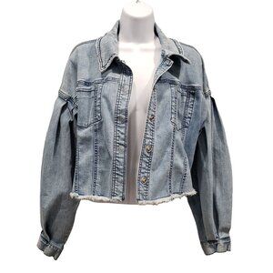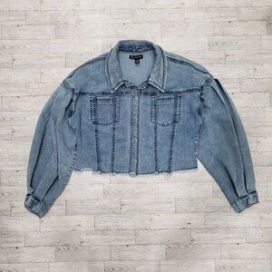 INC Cropped Raw Hem Denim Jacket Balloon Sleeves Western Retro Y2K Size M