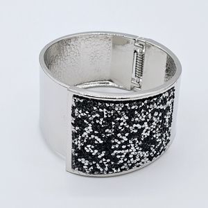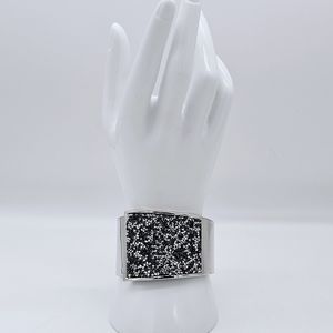 INC Cuff Bracelet Clamper Faux Druzy Rhinestone Wide Black Silver Tone Statement. Bracelet is 8" and 2" wide. Unsigned. In good pre-owned condition with very light surface wear.