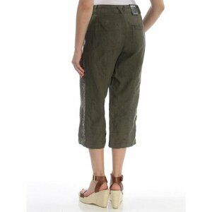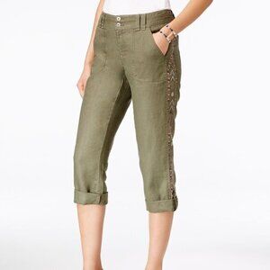 INC Curvy-Fit Embroidered Cropped Linen Pants Olive Womens Size 6P Petite