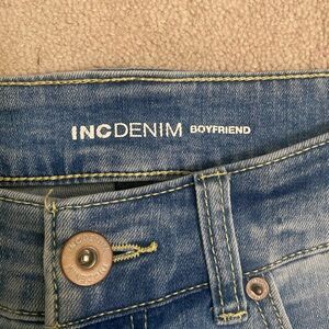 Stylish INC Denim boyfriend jeans in a classic blue wash. Perfect for casual wear.