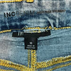 INC Denim International Blue Distressed High Rise Straight Stretchy Jeans 10