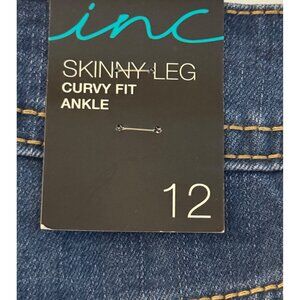 INC Denim Skinny Leg Curvy Fit Ankle Jeans Women Size 12 Medium Blue