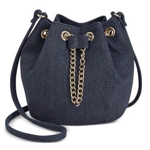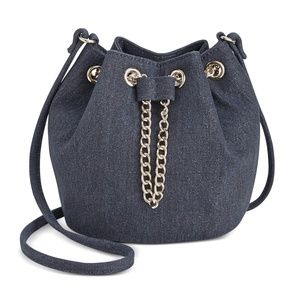INC Denim Twill Mini Draw Chain Bucket Crossbody Shoulder Bag $70 NEW