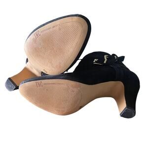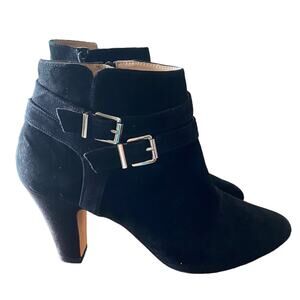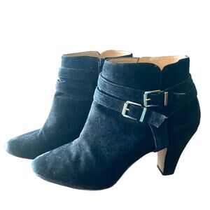 INC Dorine Black Leather Ankle Bootie Boots Size 8.5 M Buckle Zip 3" Heel