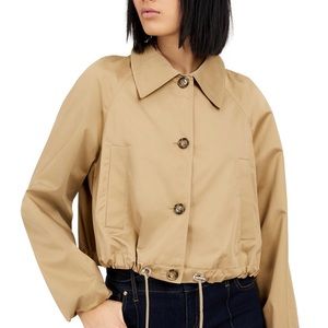 This INC drawstring bomber jacket is super cute. You want to have this in your wardrobe. It's the BOMB. Big sleeves and bold utilitarian details revive this classic bomber jacket by INC International Concepts. Color is Doe.