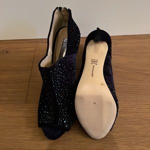 Navy Blue, Velvet, Rhinestone Heels. Size 7.5, New never worn. 4 1/2” heel.