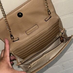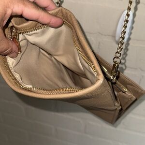 INC Elegant crossbody Tan faux Leather Bag Fold over adjustable straps