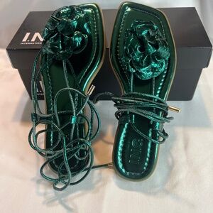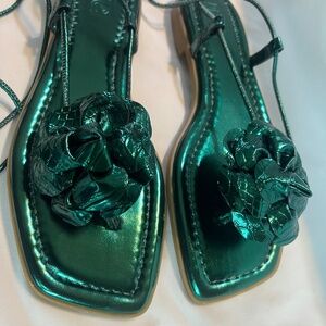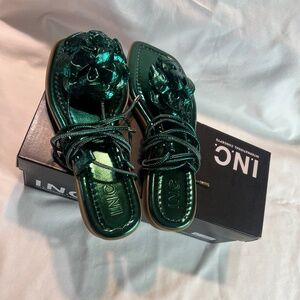 Gorgeous! Emerald green gladiator style sandals with rose by INC