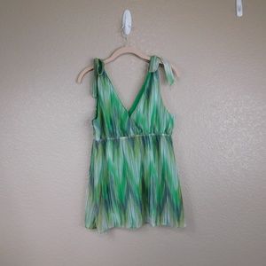 I.N.C. International Concepts Emerald Striped Elasticized Empire Waist Tie Shoulder Fully Lined Tank. Size: 10.