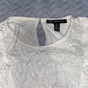 INC Eyelet Bohemian Ruffle Blouse Top Size XS. White. Excellent used condition, no major flaws. Minor signs of wear. Smoke free clean home.